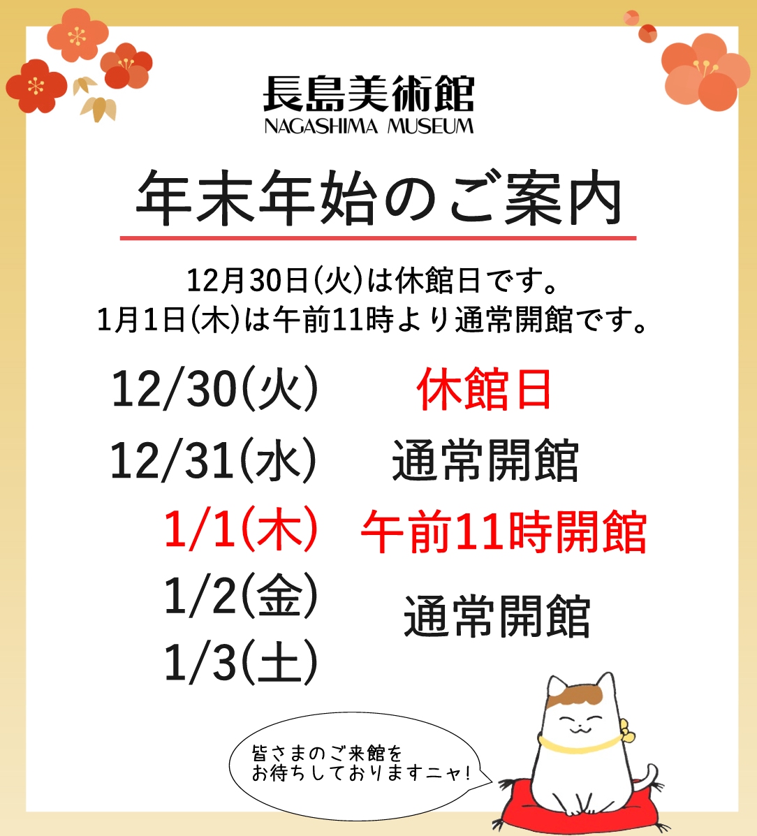 大晦日の12月31日(水)は通常どおり、開館致します。