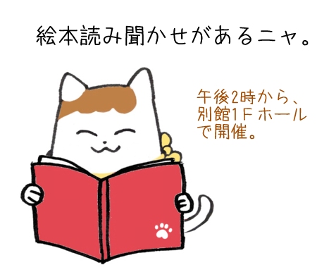 本日午後2時から絵本の読み聞かせを行います。お気軽にご参加下さい。