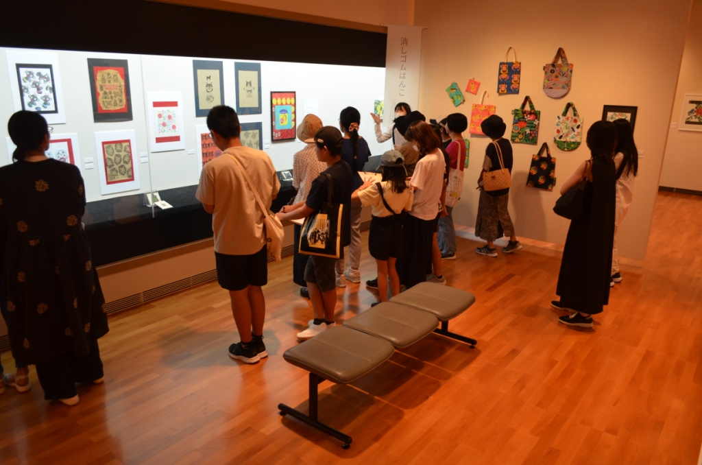 7月23日(日)午前10時から、ワークショップ「消しゴムはんこ作品を押して、デザインを作ろう」を開催しました。