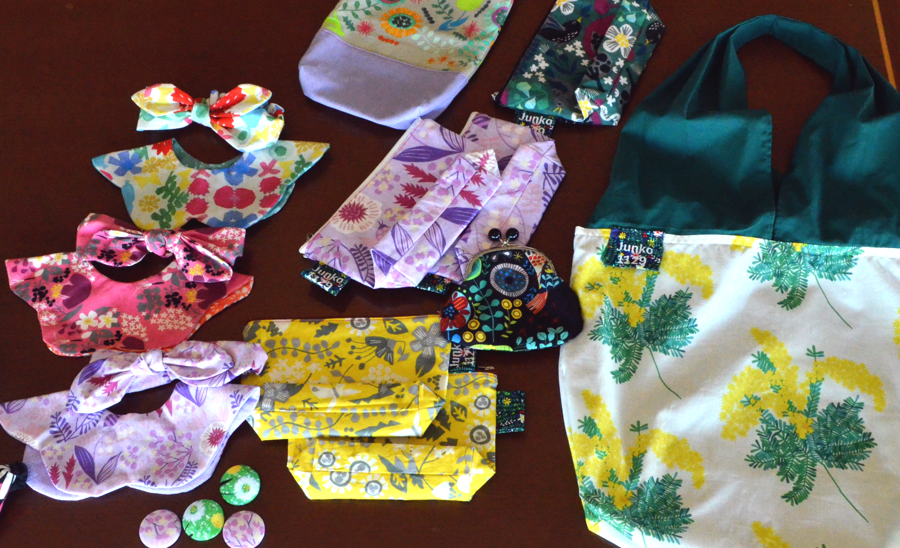 バッグや財布、赤ちゃん用スタイ、髪飾りなど横手氏によるオリジナルグッズや、夏季限定グッズを販売します。