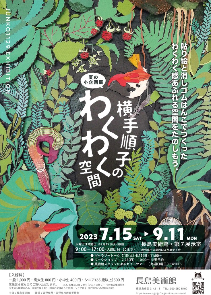 この展覧会は鹿児島市出身で、貼り絵、消しゴムはんこ作家である横手順子氏の作品をご紹介