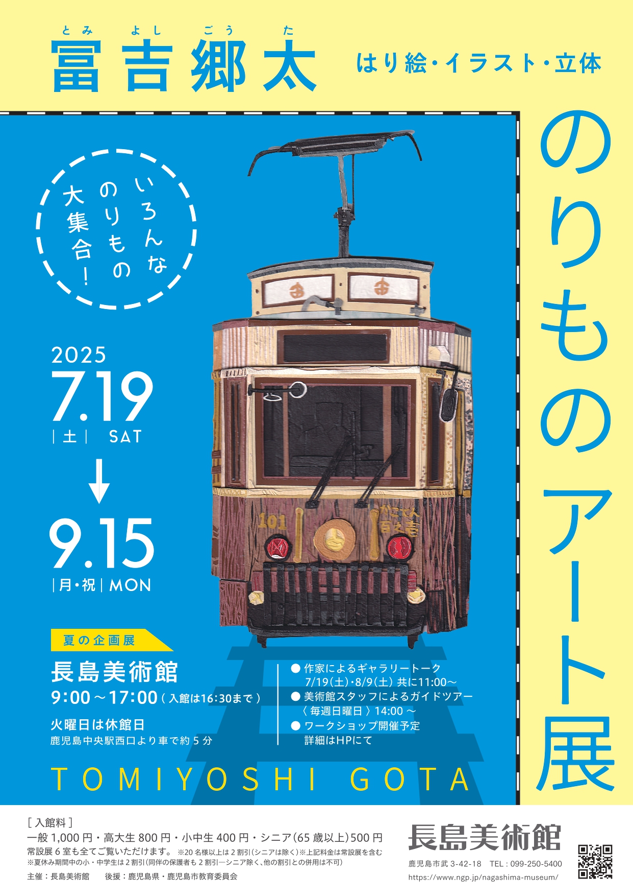 夏の企画展「冨吉郷太 のりものアート展 はり絵・イラスト・立体」