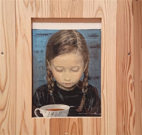 杉材で作ったオリジナルの額やケースの間をめぐりながら、酒井駒子の絵とことばを味わいます。