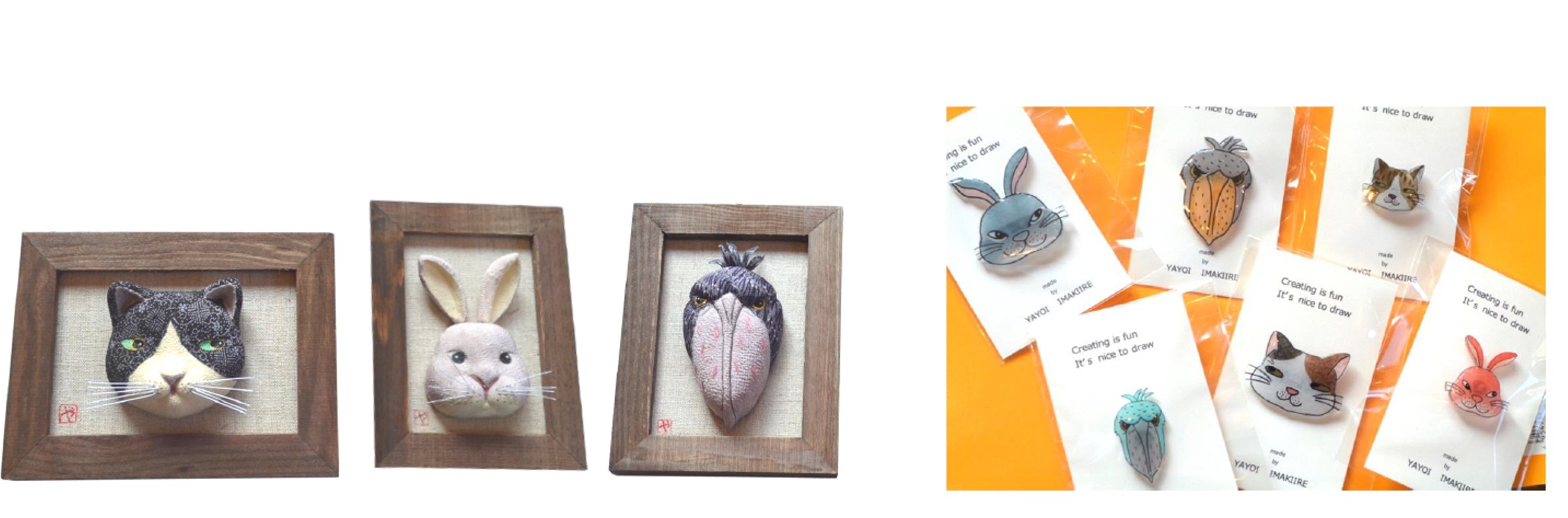 ピンバッジ、ミニ額、ポストカードなど作家オリジナルグッズや、冬限定グッズを販売します。