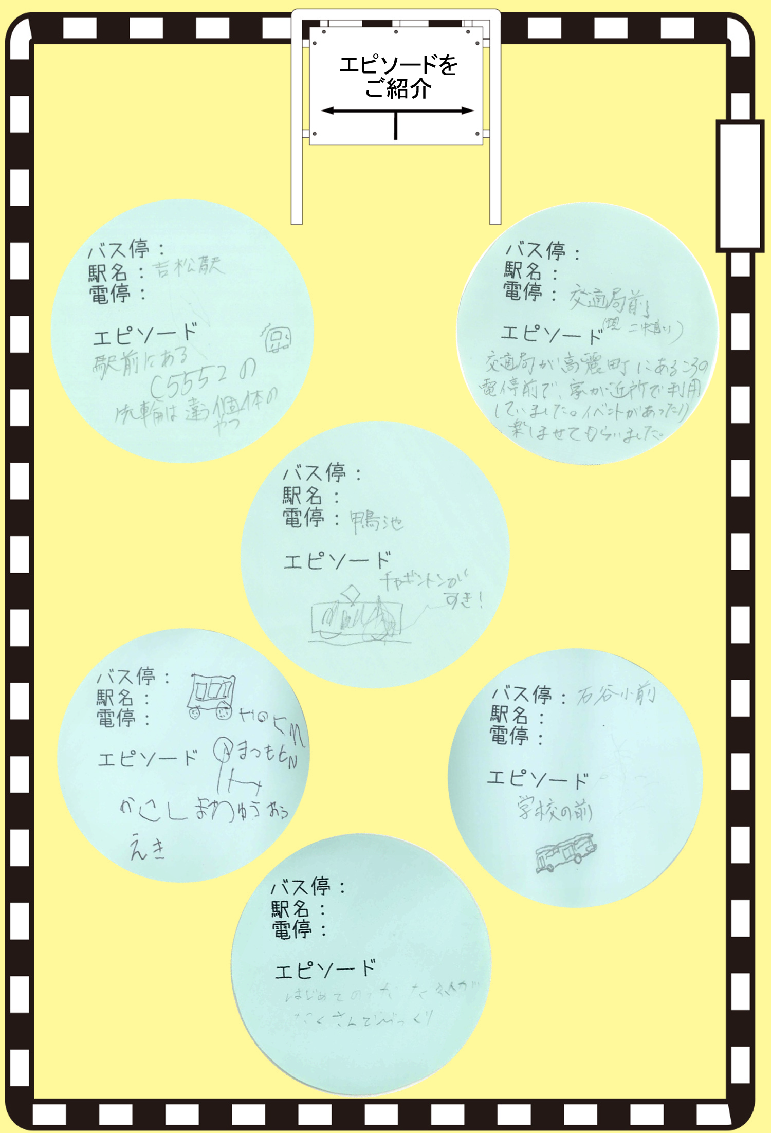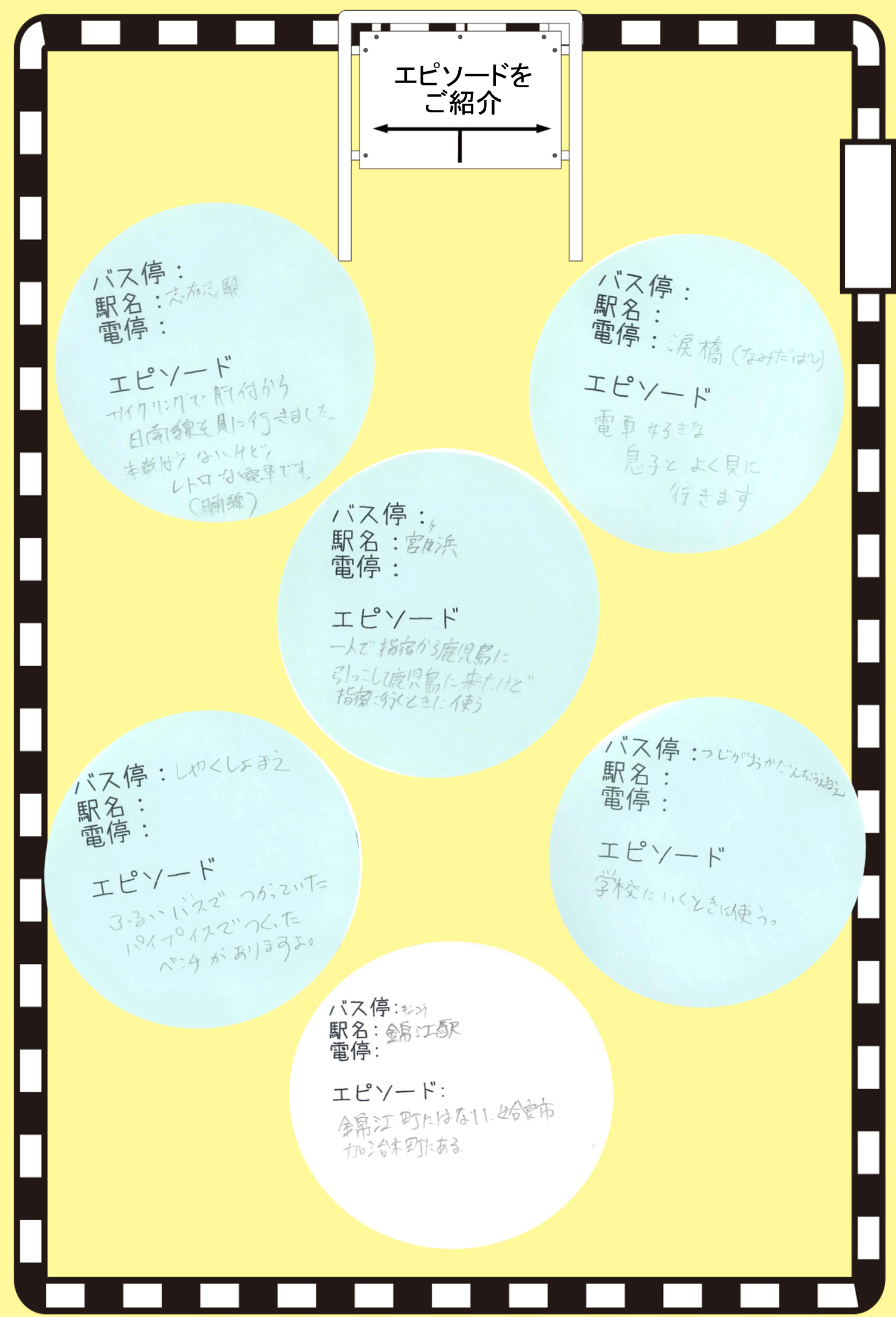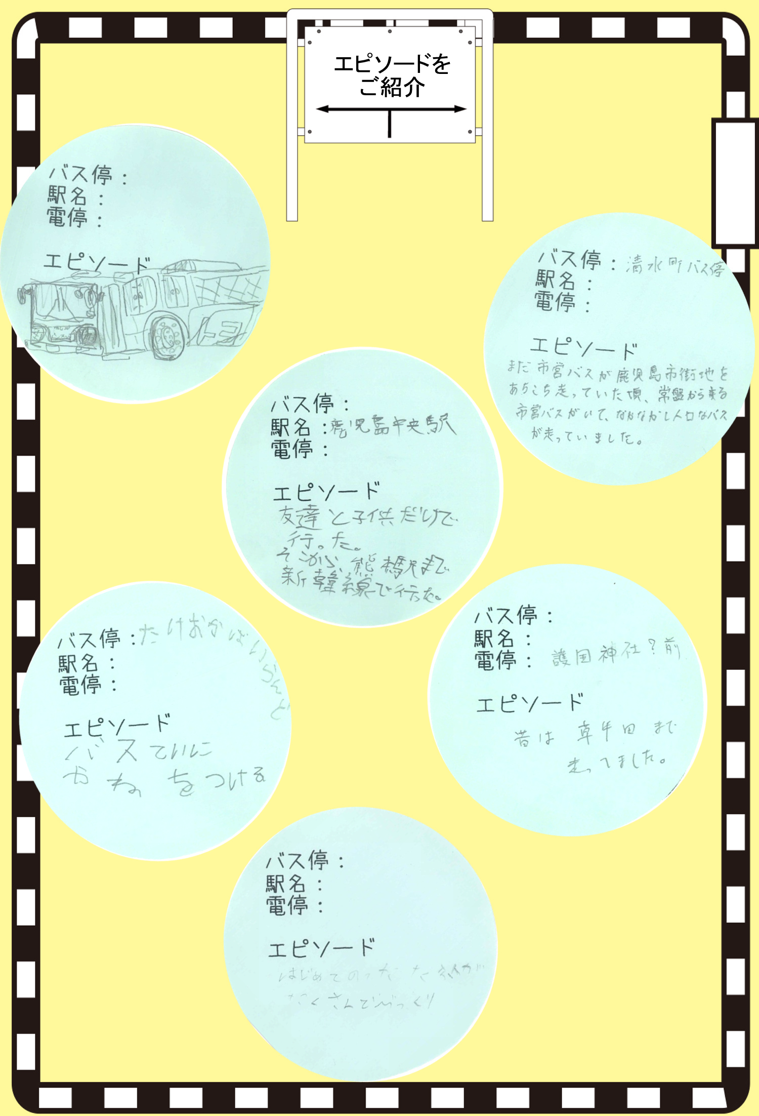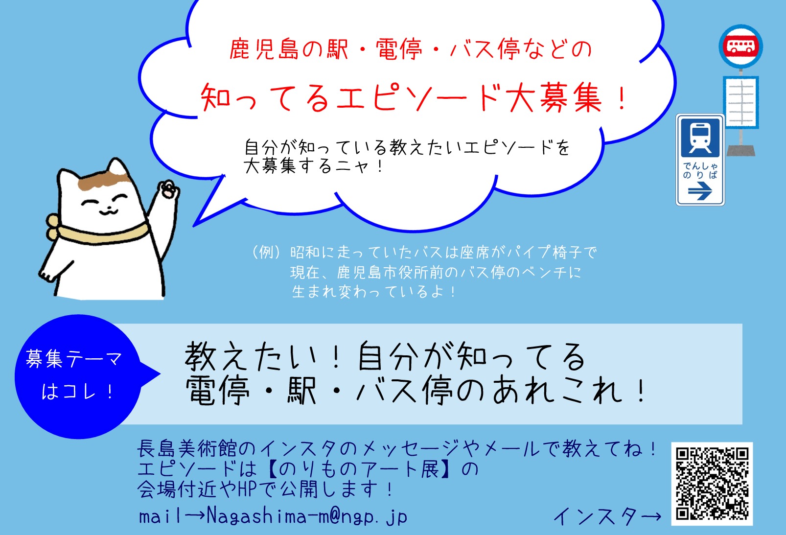 「のりものアート展」では、皆さんが知っている鹿児島の駅・電停・バス停などのエピソードを大募集しています。