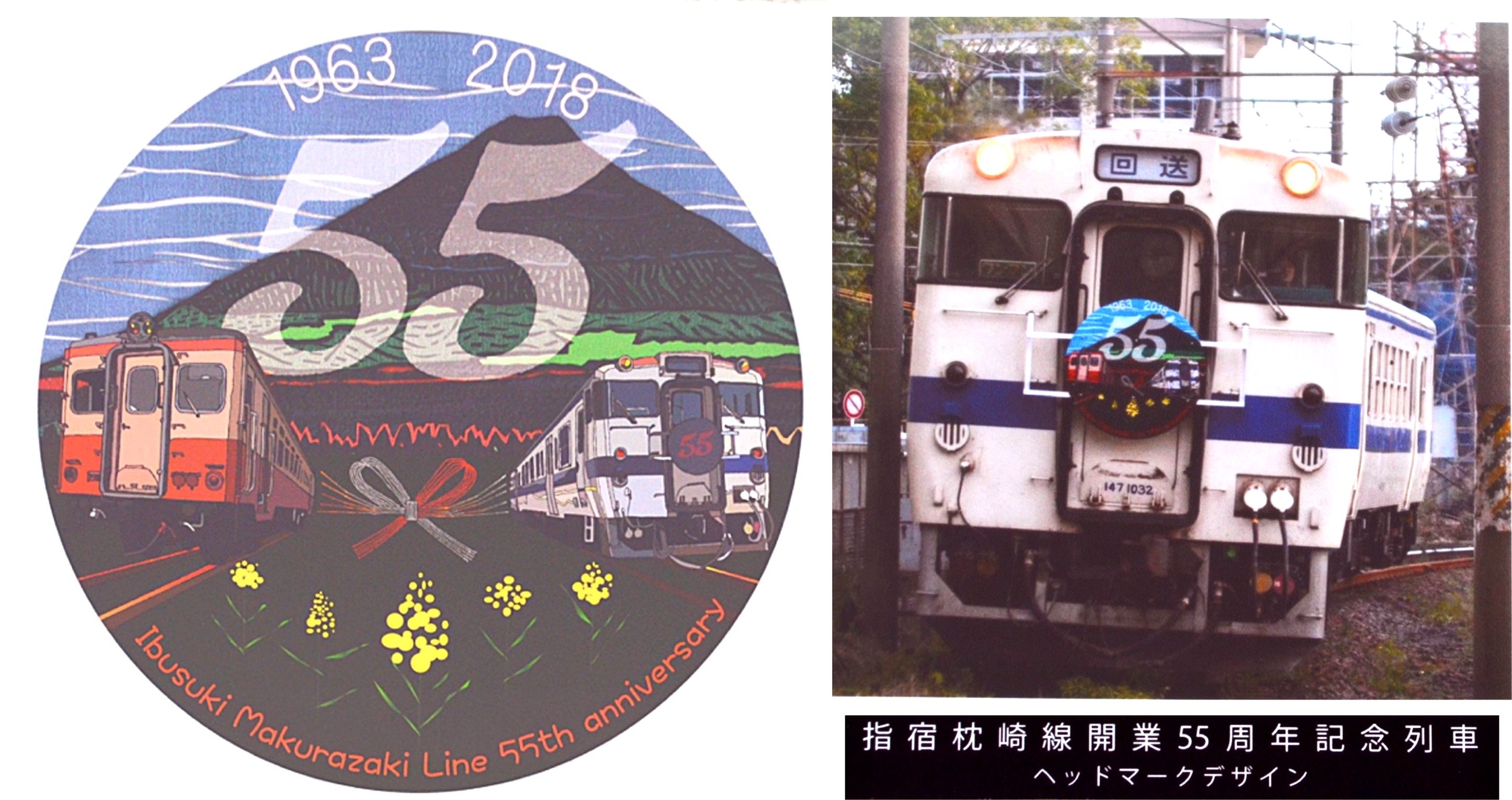 2018年にJR指宿枕崎線全線開業55周年を記念して運行した、臨時列車で実際に使用された記念ヘッドマーク。