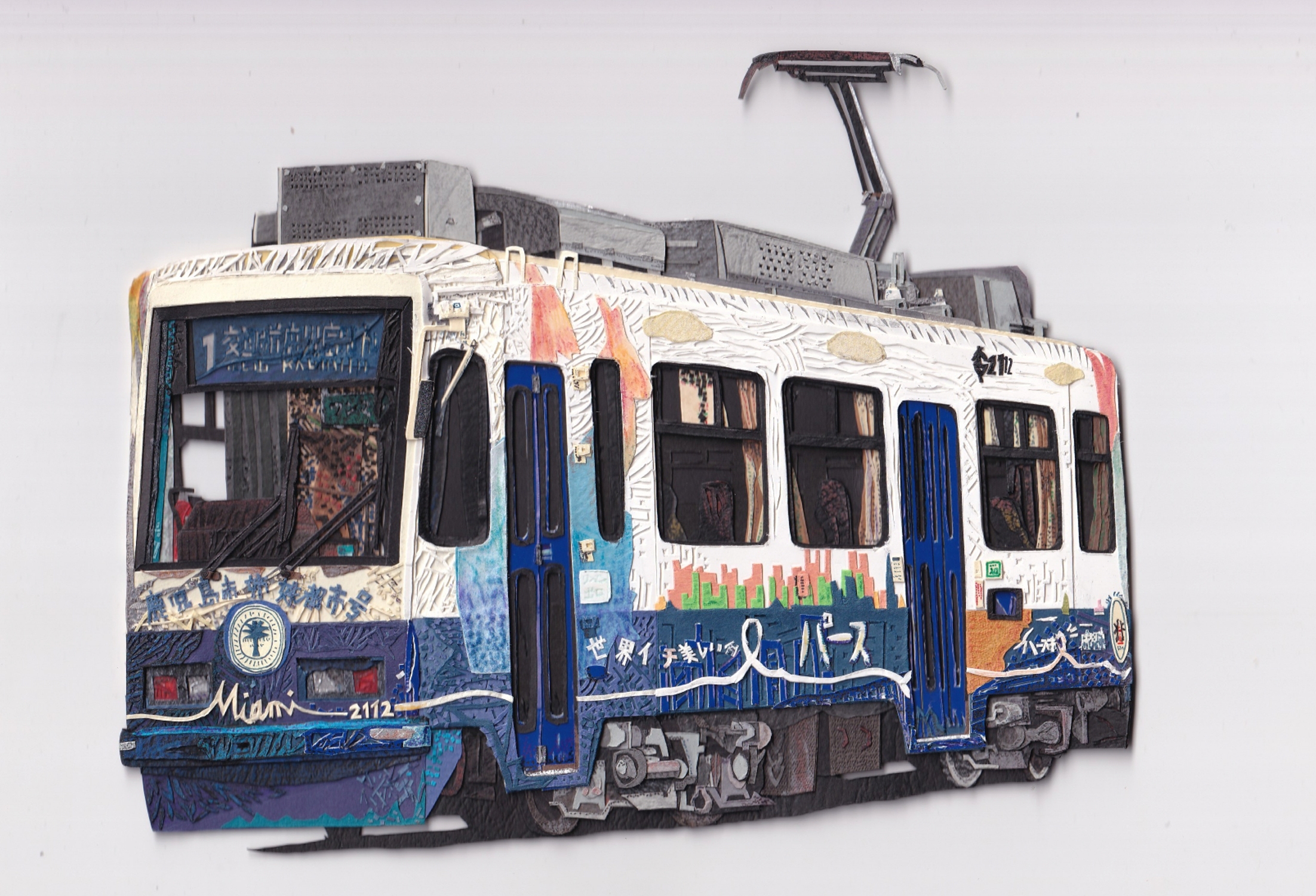 夏の企画展「冨吉郷太 のりものアート展 はり絵・イラスト・立体」