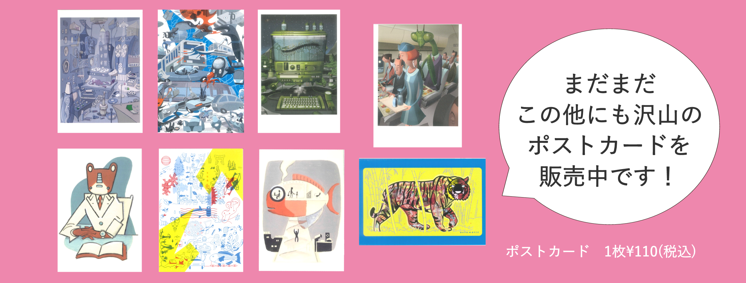 大寺氏の不思議な世界が表現されたポストカードも販売中!展覧会の記念にいかがでしょう?